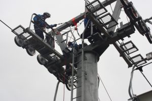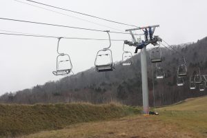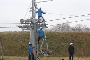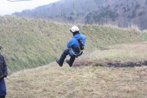 リフト上に取り残された人をロープなどを使い救助する想定で、職員同士の連携を確かめ合いながら迅速に救助出来るよう訓練を行いました。